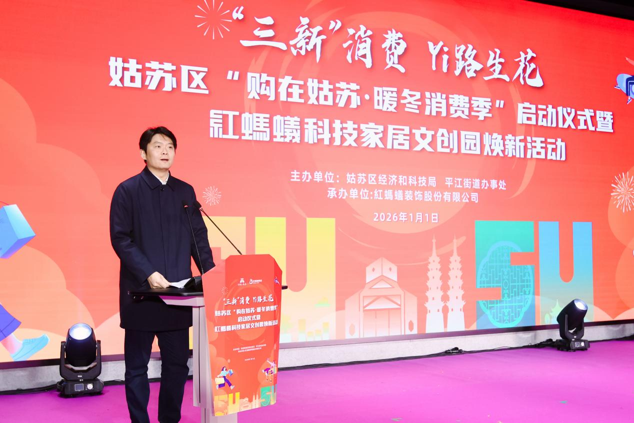 2026年元旦,在古城姑苏这片充满历史底蕴与现代活力的土地上,“购在姑苏·暖冬消费季”启动仪式暨红蚂蚁科技家居文创园焕新活动隆重举行。这场活动不仅点燃了冬季消费热情,更展现了姑苏区推动城市更新与产业升级的坚定决心。