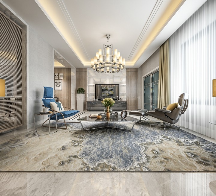 客厅:客厅与玄关之间可用屏风做隔断处理,避免出现“穿堂煞”的格局。对于方正的客厅空间,其内的家具摆放最好以对称排列,可形成风水中方正的布局要求。而摆放在客厅的招财吉祥物或是装饰摆件,不直过多,一般麒麟、 财神爷或是貌貅、开运竹等最好选其一摆放在财位之上即可。