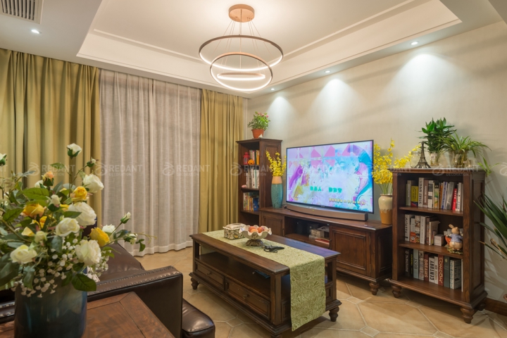 美式风格装修的天花板主要以石膏线、木线条等元素为主。石膏线是美式装修风格中的重要元素,只需经过精心搭配,就能展现出现很好的效果。美式房屋许多以木质为主,因此,木条线、木梁在顶面装饰也非常常用。