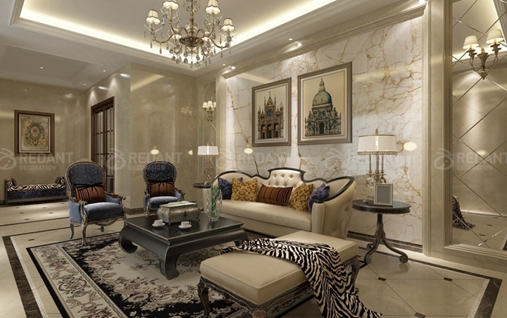 在简欧风格装修中,比较常用的材料是石、铁、木等等。我们都知道,木材具有沉稳厚重的特点,所以是装修中运用最广泛的材料。不过铁给我们的印象也比较深刻,因为它可以传达出一种怀旧、复古的感觉,但不能使用太多。而石材也可以给人一种华丽的质感。所以简欧风格的装修可以给人呈现出一种非常富丽的感觉。